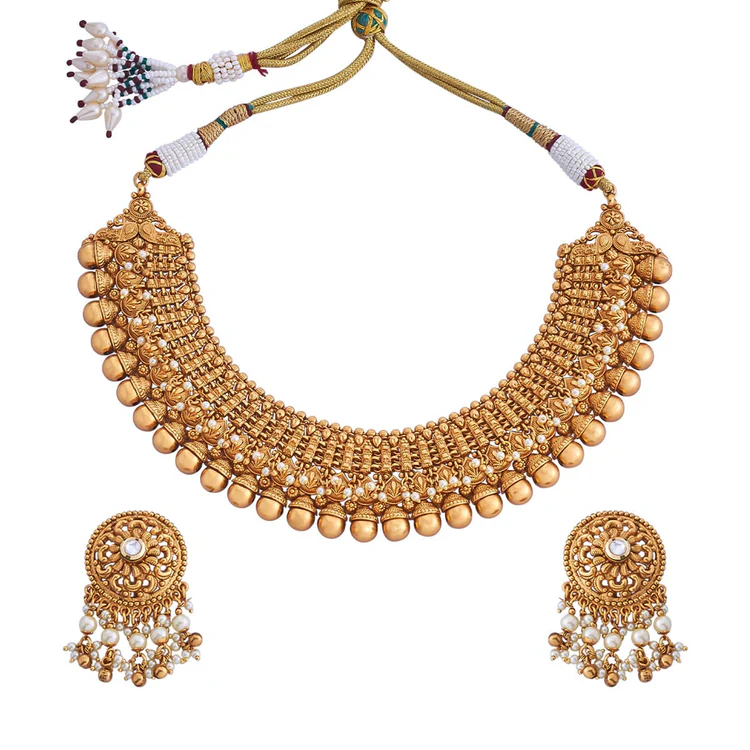 Outshine this festivities with Tara Sutaria’s fine picks of our Divine Festive Antique Necklace and Earrings. Magnify your traditional style with the alluring craftsmanship of our antique Necklace and Earrings.